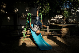 TUNISIA. Tunis. 2015. A boy playing in a schoolyard in the Medina...