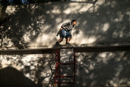 TUNISIA. Tunis. 2015. A boy playing in a schoolyard in the Medina...
