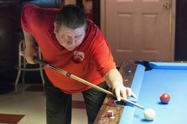 USA. Huntsville, Alabama. 2012. Shooting pool at the Chips &...