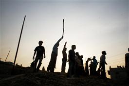 NEPAL. Kathmandu. 2006. Police charging against brick-throwing...