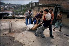 NEPAL. Kathmandu. 2006. A protester who was shot dead on a rooftop...