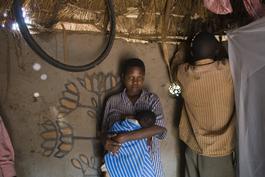 UGANDA. Busiki. April 21, 2007. Kagoya SALAMA, 20, with her new-born...