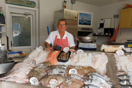 GB. England. Cornwall. Cadgwith. Jonathan Fletcher. Fishmonger....