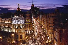 Madrid. Spain. 1995. Madrid's neoclassic Metropolis building...