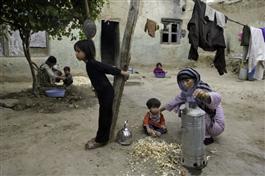AFGHANISTAN , Hazaras, 2007. Two men knead dough.