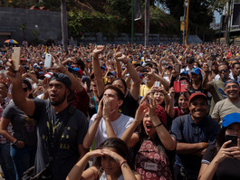VENEZUELA. Caracas. 2019. Juan Guaido's supporters shout slogans...