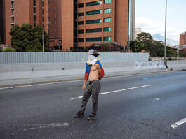VENEZUELA. Caracas. 2019. Masked protestor stands on the highway...