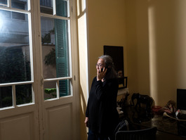 GREECE. Athens. 2019. Deborah Carlos Valencia, 69. Playing with...