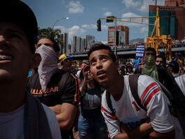 VENEZUELA. Caracas. 2019. Protestors seen during clashes with...