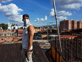 VENEZUELA. Caracas. 2019. Carlos, a drug seller, stands on a...