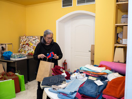 GREECE. Athens. 2019. Deborah Carlos Valencia, 69. Playing with...