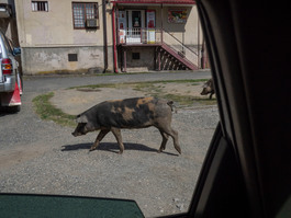 GEORGIA, Abkhazia/Abkhazeti, Sukhumi, September 2018. Pigs. Abkhaz...