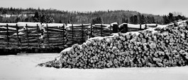 USA. Fort Kent, Maine. 2019. Woodpile.