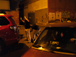 VENEZUELA. Caracas, 2019. Men talk near in Petare in eastern...