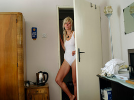 SERBIA. Novi Sad. 2014. Sofia and Boris get ready to go out.