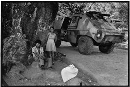 EL SALVADOR. 1980. Waiting for the bus on the road to La Libertad....