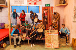 GB. London. Playhouse Theatre. The cast of 'The Jungle'. 2018....