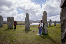 Scotland. Isle of Lewis, Outer Hebrides. Visitors to the standing...