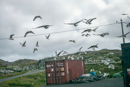 Scotland. Isle of Harris, Outer Hebrides. A ganet burried in...