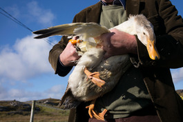 Scotland. Isle of Harris, Outer Hebrides. Clipping duck-wings....