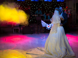 Men dance at a wedding in an illegal - but tolerated - wedding...
