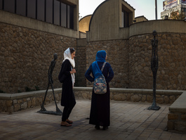 IRAN. 2018. Parinaz in a girls dormitory at Tehran University....