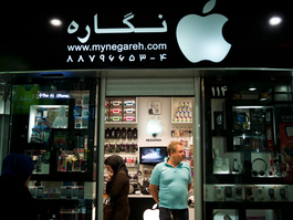 IRAN. Tehran. 2015. Customers viewing the latest Apple products...