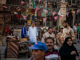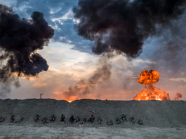 Iranian paramilitary Baseej forces reenact the Iran-Iraq War...