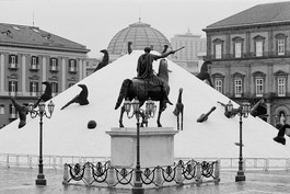 ITALY. Naples. 1995. Mimmo PALADINO's sculpture in Piazza Plebiscito...