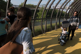Germany. Oberhausen. 2018. Pedestrian bridge across the Rhine-Herne...