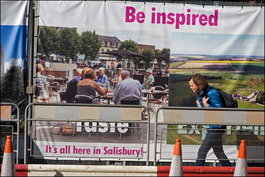 GB. England. Wiltshire. Salisbury. Posters decorate the fencing...