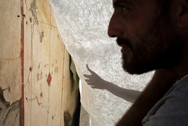 ITALY. Pompeii. October 2018. New excavations. Restaurer wetting...