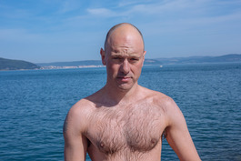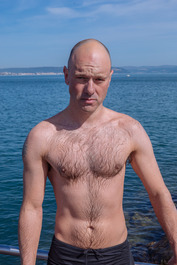 Turkey. Canakkale. 2018. British swimmers poses after swimming...