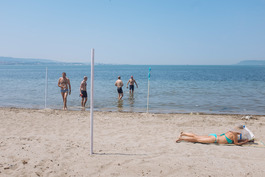 Turkey. Canakkale. 2018. A couple watch the British swimmers...