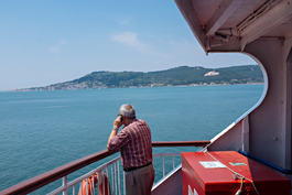 Turkey. Canakkale. 2018. A man talks on the phone during a ferry...