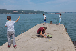 Turkey. Canakkale. 2018. People fishing at Dardannelles.
