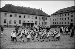 POLAND. Bartoszyce. 1948. Children dance in the courtyard of...
