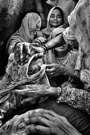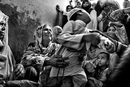 INDIA. Haryana. 2017. Junaid's mother and sister surrounded by...