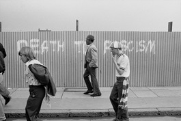 GB. England. London. National Front Demo, anti fascism graffitti....