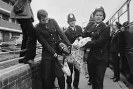 GB. England. London. Injured policemen at National Front Demo....