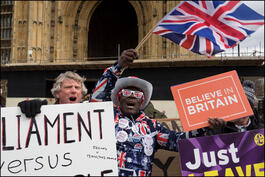 UK. England. London. Leave Brexit protesters outside the Houses...