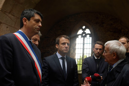 FRANCE. Oradour-sur-Glane. April 28, 2017. Emmanuel MACRON visited...