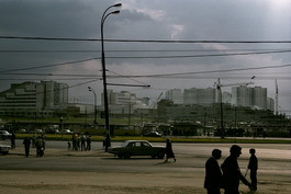USSR. Moscow. 1993. Magnum Photographer ABBAS with a cardboard...