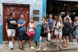 CUBA. Havana. Outside of Bodeguita del Medio Bar. 2017.