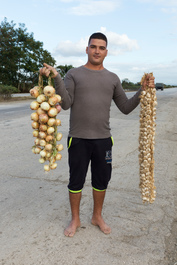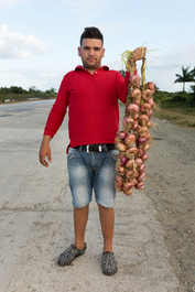 CUBA. Selling onions and garlic on the motorway. 2017.