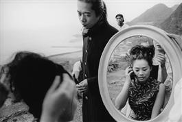 TAIWAN. 2000. A seasick bride is comforted by her husband during...