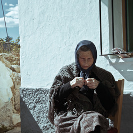 SPAIN. 2010. An old woman poses in the porch of her house in...