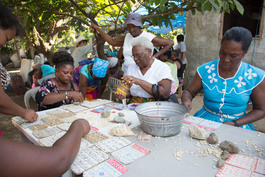 HONDURAS. Rio Esteban. 2018. Neighbors play bingo before anniversary...