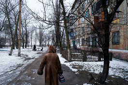 UKRAINE. Toretsk. 2018. Civilian neighborhood near separatist...