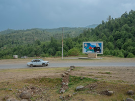 AZERBAIJAN, Astara. 2018. Woman stand in front of former Azerbaijani...